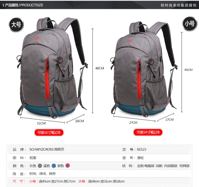 颜色分类: 灰色大号 紫色大号 蓝色大号 灰色小号 紫色小号 蓝色小号